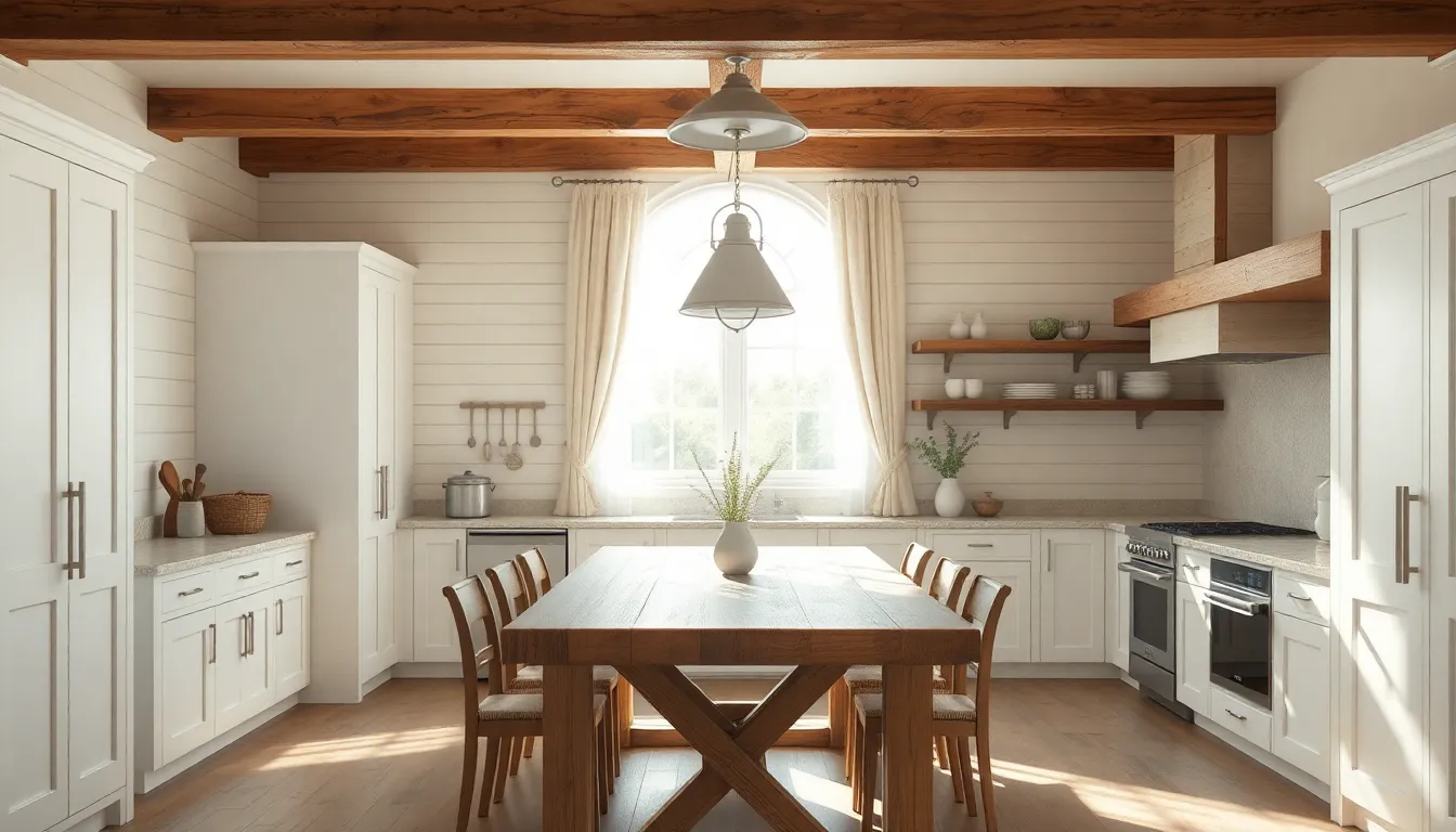 Wood accents significantly contribute to the farmhouse aesthetic. Shiplap walls and reclaimed wood beams offer rustic charm that complements sleek fixtures. Stone countertops, particularly in quartz or granite, add durability and sophistication. Textiles, such as linen or cotton, bring warmth through window treatments and kitchen accessories. The combination of these materials creates a rich sensory experience that embodies both comfort and style.